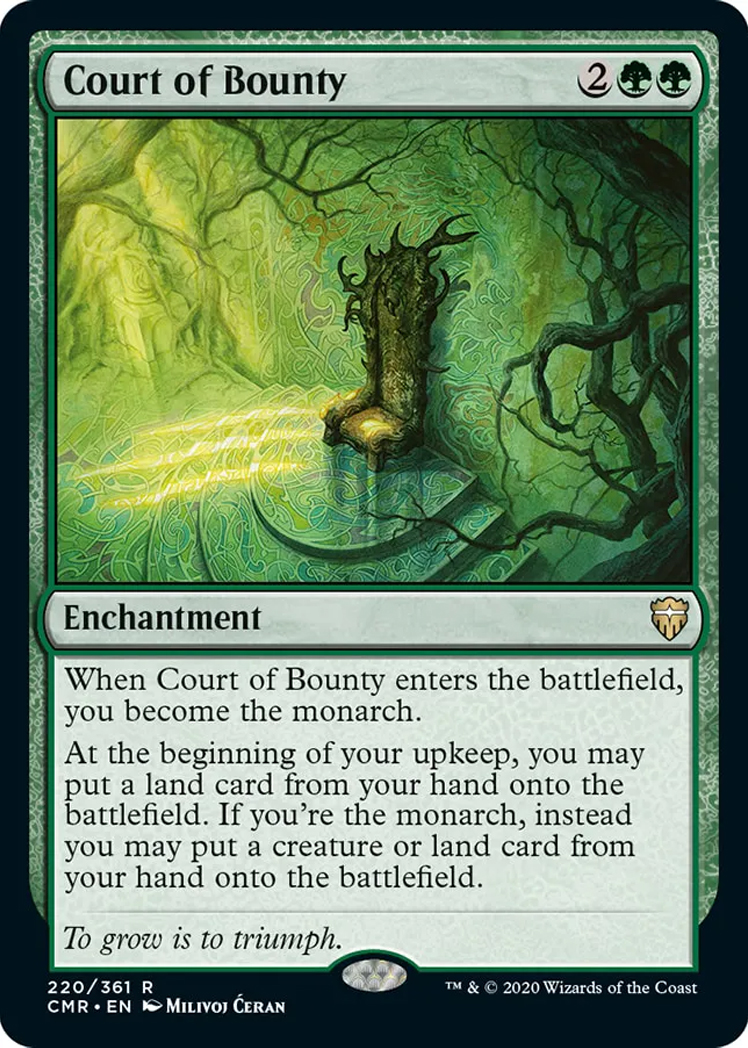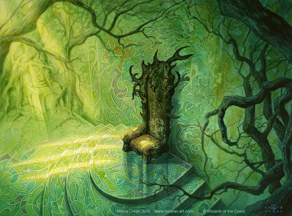 “Court of Bounty” Milivoj Ćeran 2018.– 37 x 50 cm (14,5 x 19,7 inches)– acrylic on paper– AD Andrew Vallas/Sandra Everingham– Magic the Gathering, “Commander Legends” Nov 2020– © Wizards of the Coast– private collection